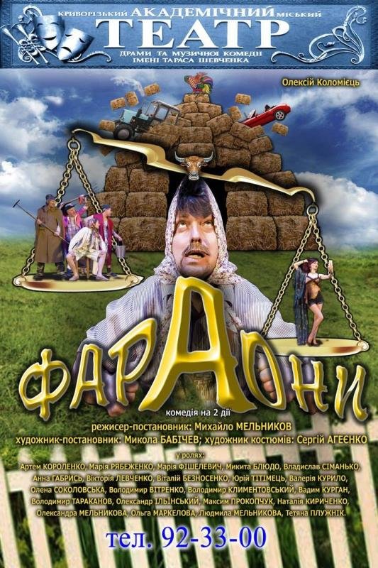 «Фараони» – комедія на дві дії Олекси Коломійця (режисер-постановник Михайло Мельников).