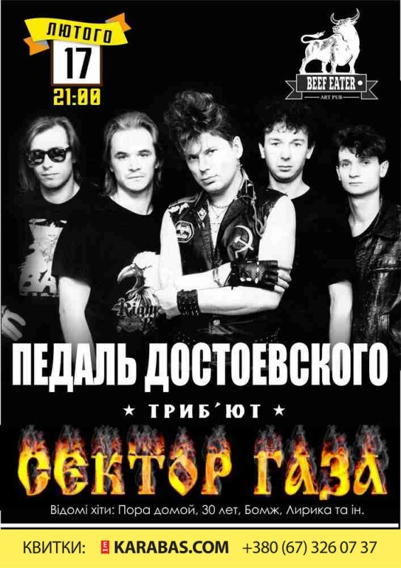 Сектор Газа tribute show Педаль Достоевского - проект, который дает возможность сторонникам группы "Сектор Газа" услышать любимые хиты в живом исполнении почти 1 в 1 с оригиналом!