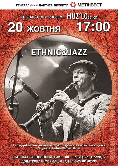 Приглашаем на второй концерт фестивальной серии Krivbass City Project MUZ`Location. Программа состоит из этнической музыки, удачно объединённой джазовыми гармониями и техникой. Слушателям предложат джаз-мануш, кельтские мотивы и клезмерскую музыку, прародительницу современной джазовой музыки.