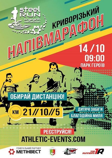 Впервые Первый Криворожский полумарафон "Steel Run". Участников ждут оригинальная медаль финишера и призы от спонсоров и партнеров. Каждый взнос на Благотворительном забега будут направлены на адресную помощь больным туберкулезом.