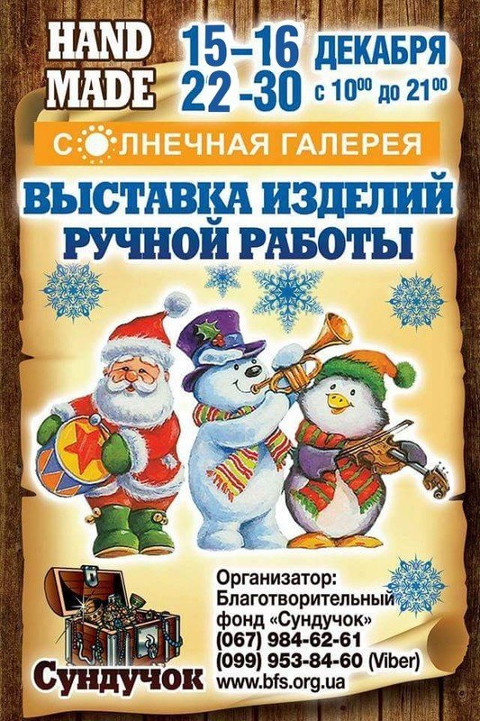Приглашаем вас посетить Новогоднюю выставку изделий Hand Made, которая будет проходить в ТРЦ Солнечная Галерея в выходные 15-16 декабря и весь праздничный период с 22 по 30 декабря включительно.