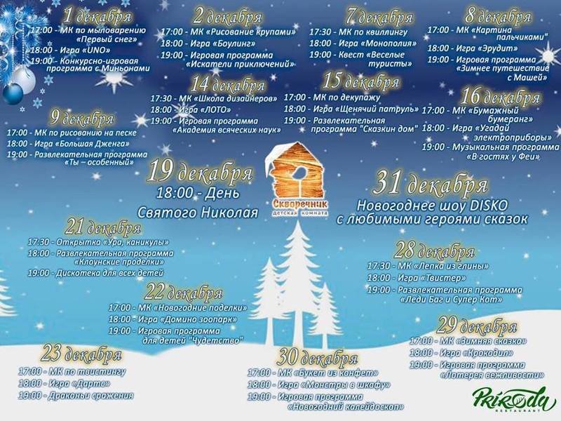 Наша детская комната Скворечник предлагает провести зиму вместе. Мы проводим интересные игры и мастер-классы. С нетерпением ждем наших маленьких друзей!