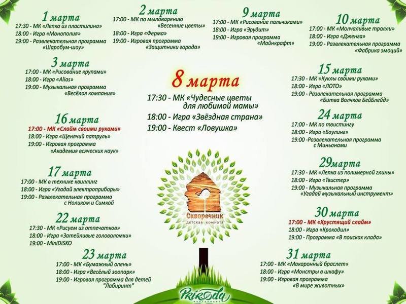 Наша детская комната Скворечник предлагает провести весну вместе. Мы проводим интересные игры и мастер-классы. С нетерпением ждем наших маленьких друзей!