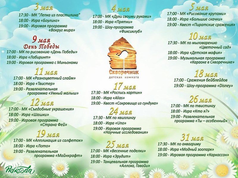 Наша детская комната Скворечник предлагает провести весну вместе. Мы проводим интересные игры и мастер-классы. С нетерпением ждем наших маленьких друзей!