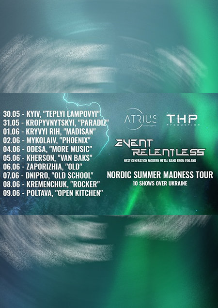 Event Relentless - финская музыкальная группа, играющая в жанре modern metal. Коллектив был образован в конце 2013 года и с тех пор уверенно идет к цели захвата всеобщих сердец.