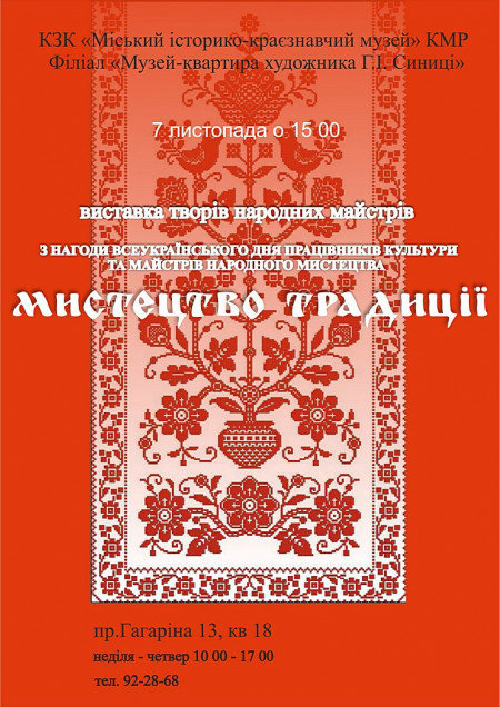 Приглашаем всех желающих посетить выставку произведений народного и декоративно-прикладного искусства по случаю Всеукраинского дня работников культуры и мастеров народного искусства.