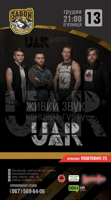 Приглашаем всех любителей alternative rock/metal жанра на сольный концерт группы U.A.R. с города Днепра.