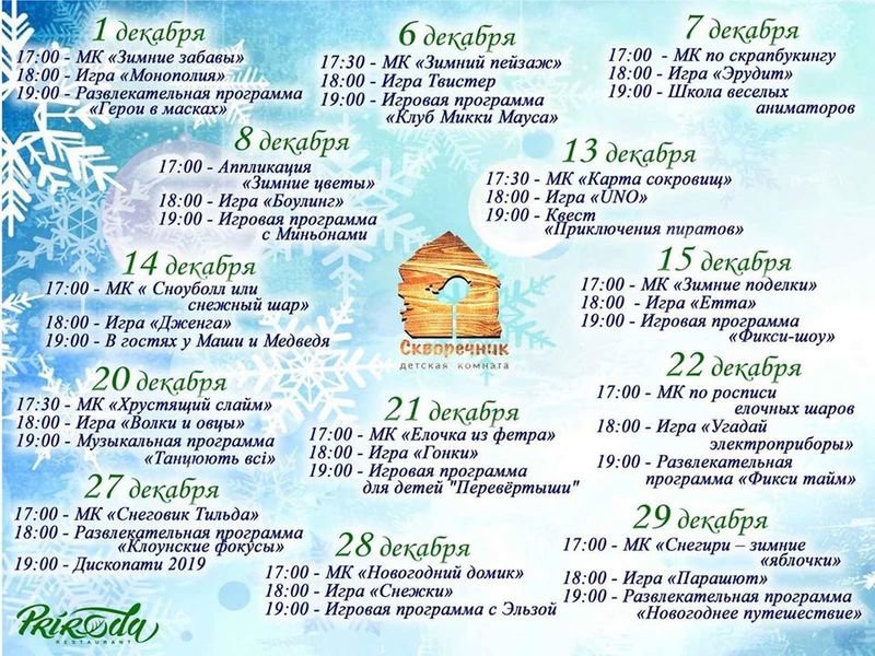 Наша детская комната Скворечник предлагает провести зиму вместе. Мы проводим интересные игры и мастер-классы. С нетерпением ждем наших маленьких друзей!