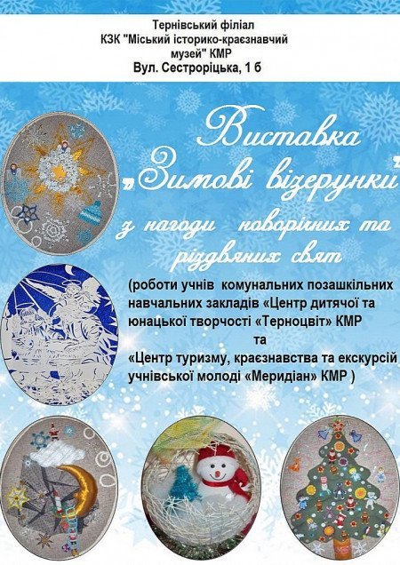 На выставке представлены работы учеников коммунального внешкольного учебного заведения «Центр детского и юношеского творчества« Терно-цвет »и« Центр туризма, краеведения и экскурсий учащейся молодежи «Меридиан».