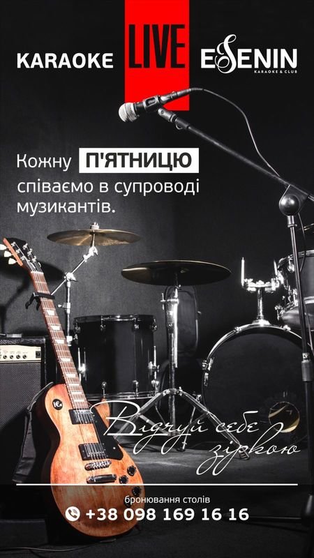 Виконуй пісню на сцені Esenin Karaoke & Club під супровід живої музики та відчуй себе справжньою зіркою.
