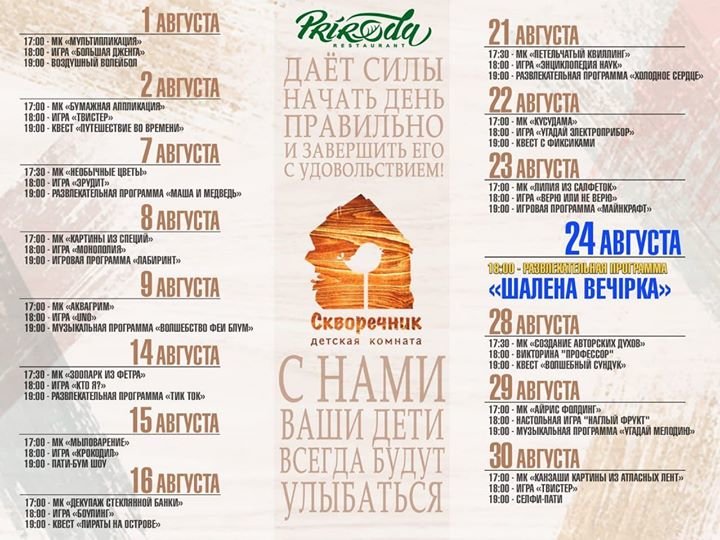 Наша детская комната Скворечник предлагает провести лето вместе. Мы проводим интересные игры и мастер-классы. С нетерпением ждем наших маленьких друзей!