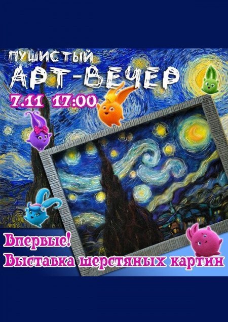 Приглашаем на открытие выставки шерстяных картин Ирины Бедрик. В этой уникальной технике будет представлена и «Звёздная ночь» — одна из наиболее известных картин нидерландского художника-постимпрессиониста Винсента Ван Гога.
