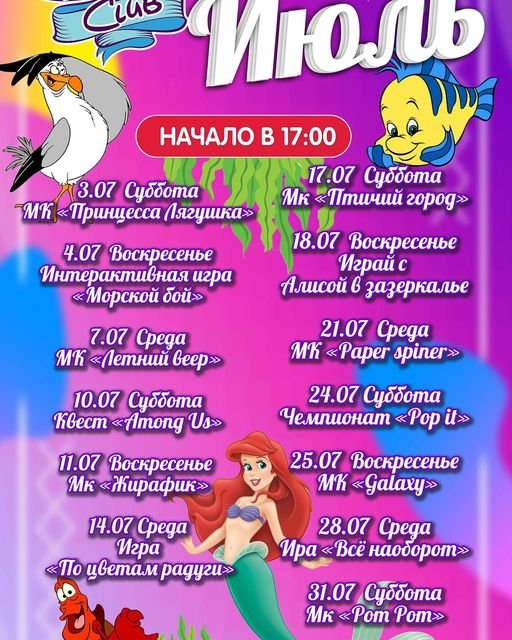 Афиша бесплатных программ и мастер классов, оплачивается только вход на территорию детского развлекательного комплекса.