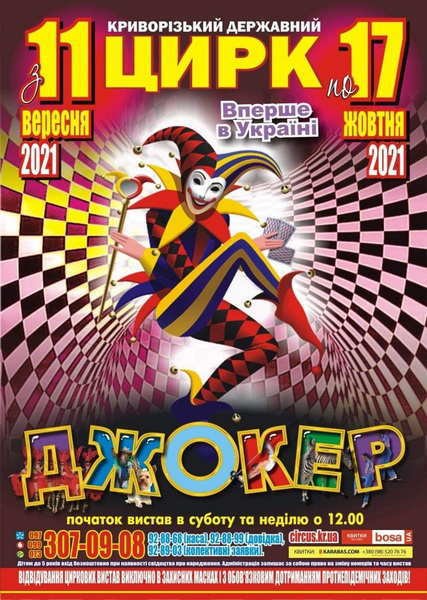 Джокер (перевод с англ.) - паяц, клоун, комик. Это символ веселья и развлечений. Изображение Джокера в картах связано с образом клоуна. И в нашей программе цирковой Джокер раскроет все свои карты зрителю. В его колоде есть "Тузы" - номер канатоходцев (победители в Монте-Карло), "Дамы" - воздушные гимнастки. Есть "Короли" - акробаты, жонглеры. Все карты - номера в его колоде яркие и сильные. Также, в колоде есть сюрприз для детей - номер "Собаки на скейтбордах" и номер "Зебры". А сам Джокер, как главная карта будет перевоплощаться в любой образ, чтобы подарить зрителям радость и положительные эмоции. Но, независимо от расклада карт, всегда в выигрыше будет наш зритель!