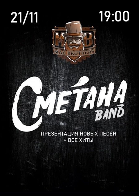 "СМЕТАНА Band" - это группа из Днепра, получившая известность благодаря жизненным и смелым клипам на злободневные темы. Общий просмотр их контента на youtube уже перевалил за 35000000 - острое словцо и высмеивание социума сделали свое дело. С конца 2017 группа несколько меняет стиль в сторону печального панка, что только добавляет им популярности и подчеркивает индивидуальность среди других коллективов.