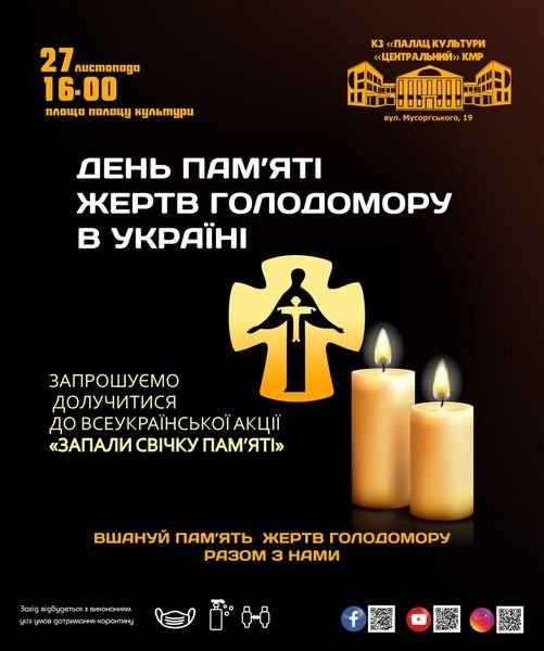 Приглашаем всех неравнодушных жителей района и города присоединиться вместе с нами к акции  ко Дню памяти жертв голодомора в Украине. Приходите вместе с семьями - детьми, бабушками и дедушками и берите с собой свечи.