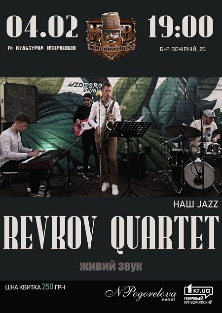 Kirill Revkov "Quartet" представит новую авторскую джазовую программу. Программа проникнута влиянием contemporary music, funk, hip-hop and trep-hop.