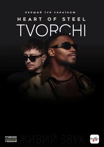 Tvorchi продовжують свій перший тур містами України Heart of Steel! Вони потужно представили Україну у Великій Британії на «Євробаченні», де заспівали про сталеві серця українців для 200 мільйонів телеглядачів. Tvorchi називають головним відкриттям молодої української сцени, а їхні треки звучать як на масштабних фестивалях, так і на домашніх вечірках.