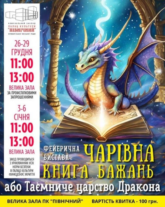 Запрошуємо всіх на феєричну виставу "Чарівна книга бажань або Таємниче царство дракона"!