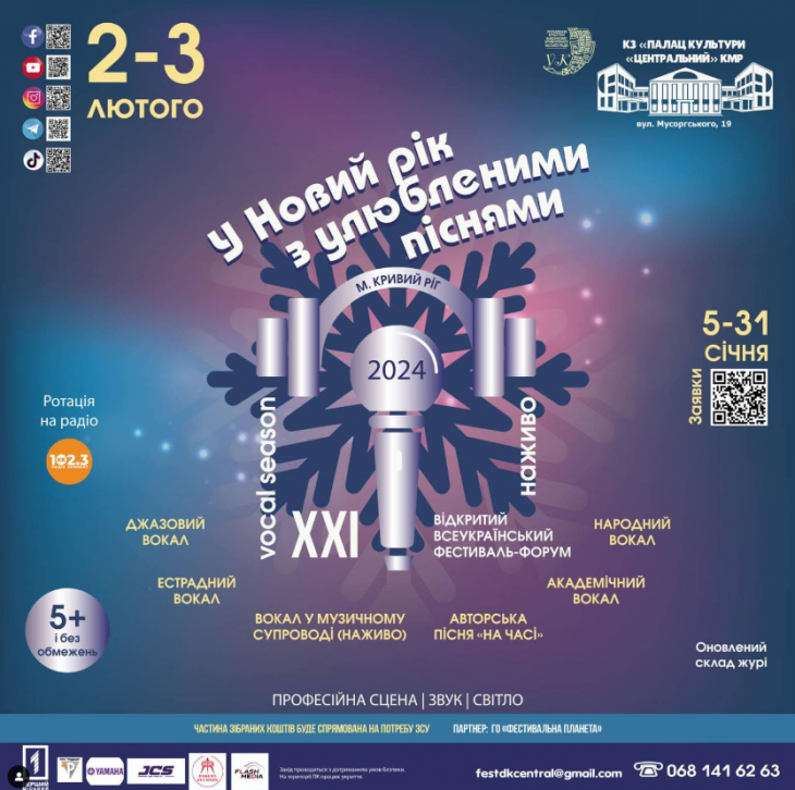 02 лютого: в рамках фестивалю відбудуться інтенсиви та майстер-класи від членів журі. Попередній запис за номером телефону 068 141 6263