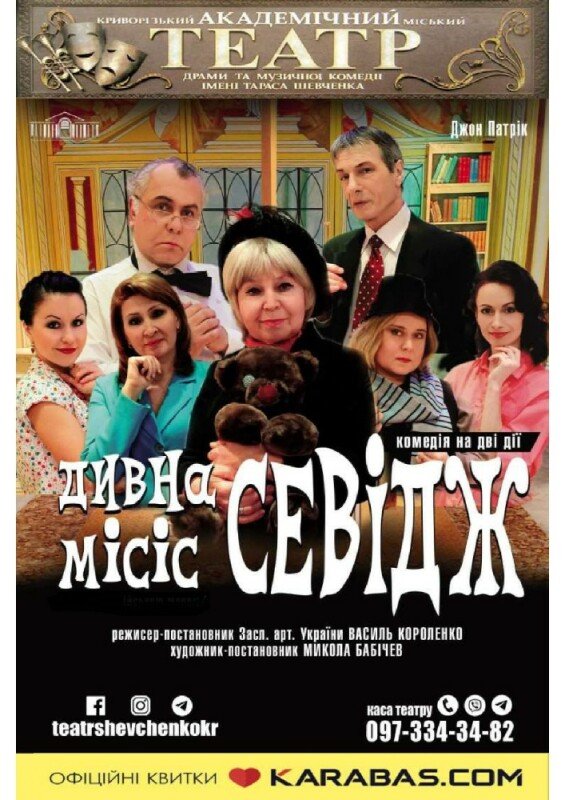 «Дивна місіс Севідж» - трагікомедія Джона Патріка (режисер-постановник заслужений артист України В. Короленко).