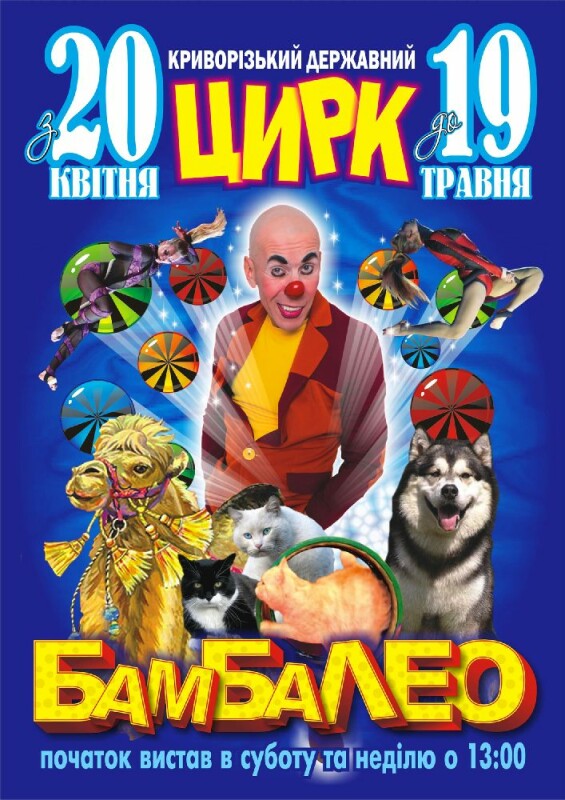 20, 21, 28 квітня та 4, 5, 11, 18, 19 травня 2024 року в Криворізькому державному цирку відбудеться вистава цирку «Бамбалео».