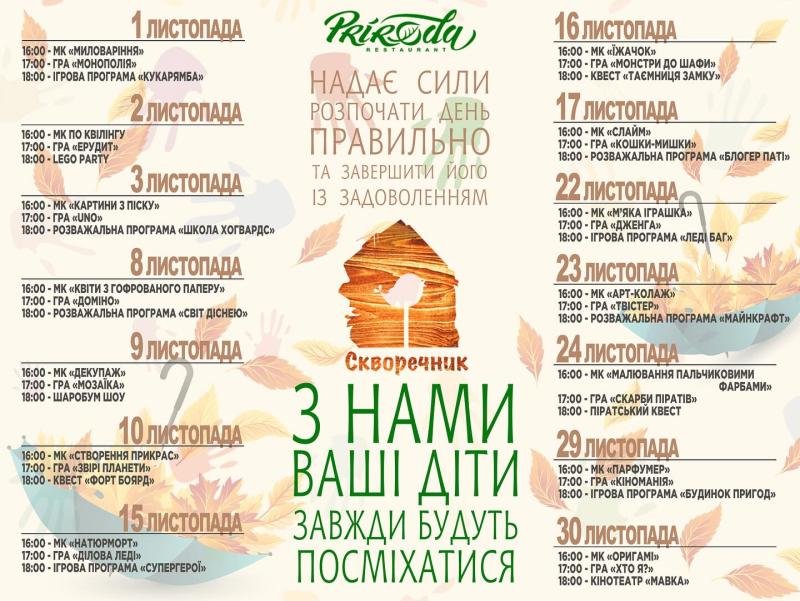 Аніматори вже виглядають Ваших дітлахів на забавлялки, захоплення та веселушки. Щоп'ятниці, щосуботи та щонеділі відбуватимуться свята для маленьких гостей. Улюблені герої, захопливі майстер-класи та кумедні ігри. Чекаємо Всіх на веселощі.