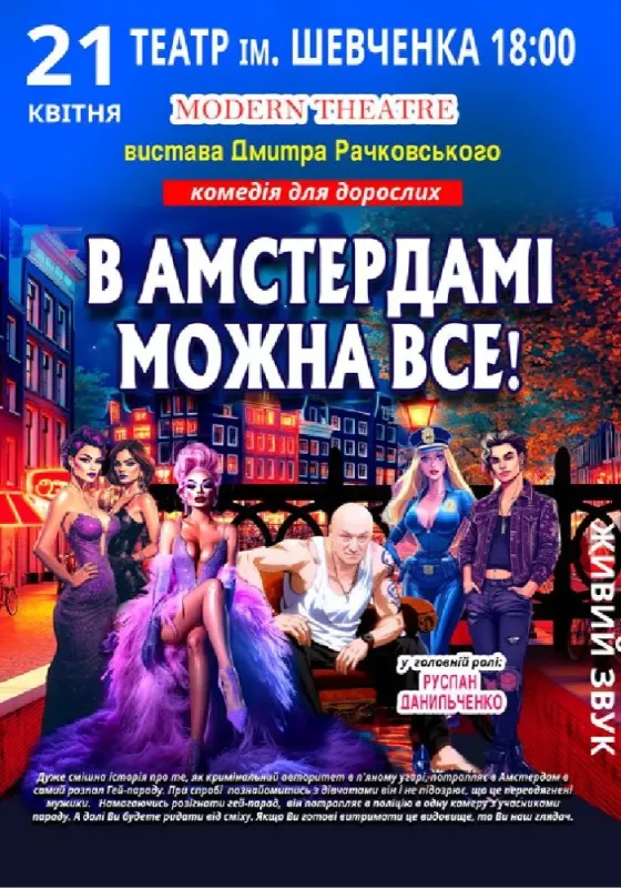Дуже смішна історія про те, як кримінальний авторитет в п'яному угарі, потрапляє в Амстердам в самий розпал Гей-параду. Намагаючись припинити те, що там відбувається, громлячи все навколо, він потрапляє в поліцію в одну камеру з учасниками параду. А далі Ви будете ридати від сміху. Якщо Ви готові витримати це видовище, то Ви наш глядач.