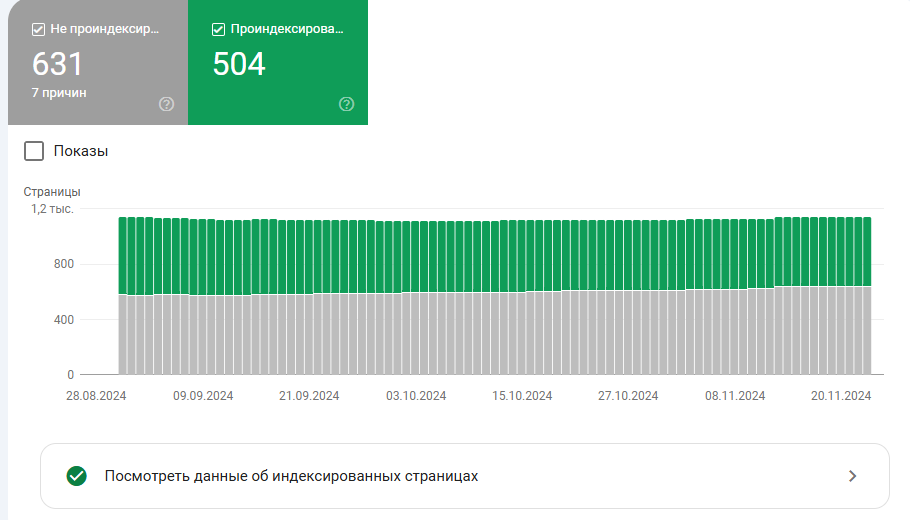 - Информацию о проблемах с индексацией, таких как ошибки или блокировки.