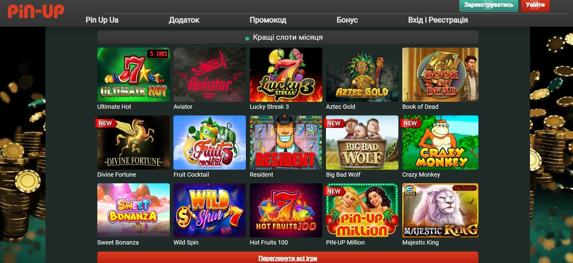 Дивіться також інформацію про інші промо активності казино Пін Ап за нашим посиланням та на офіційному сайті закладу.