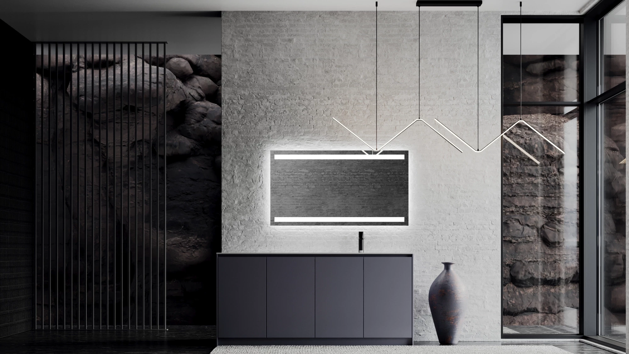 - Супертонкий корпус 30-35 мм і приховане кріплення – дзеркало ніби ширяє над стіною.