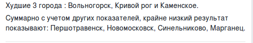 Худшие 3 города : Вольногорск, Кривой Рог и Каменское.