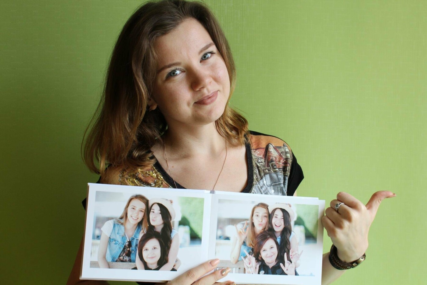 - фотографии можно подписать, можно выстроить в коллаж, можно растянуть на весь разворот