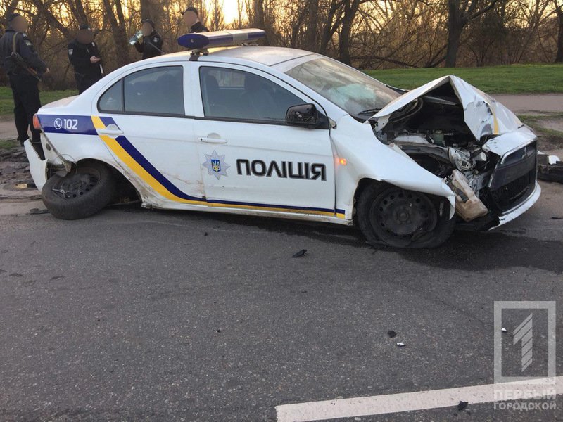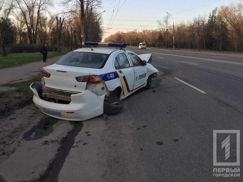В Покровском районе Кривого Рога произошла авария с участием полиции охраны. Их автомобиль наскочил на камень и влетела в столб.