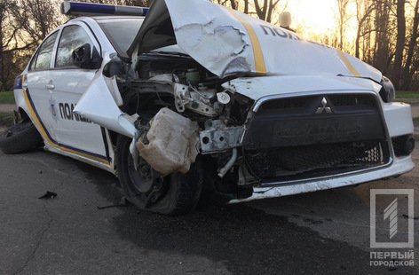 Авария в Кривом Роге: автомобиль правоохранителей влетел в столб (ФОТО)
