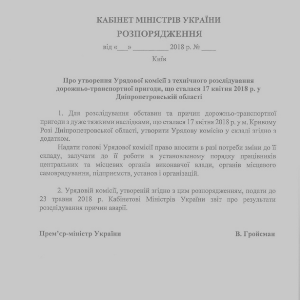 Кабинет министров Украины сформировал правительственную комиссию по расследованию страшного дорожно-транспортного происшествия в Кривом Роге, в результате которого погибли 9 человек.