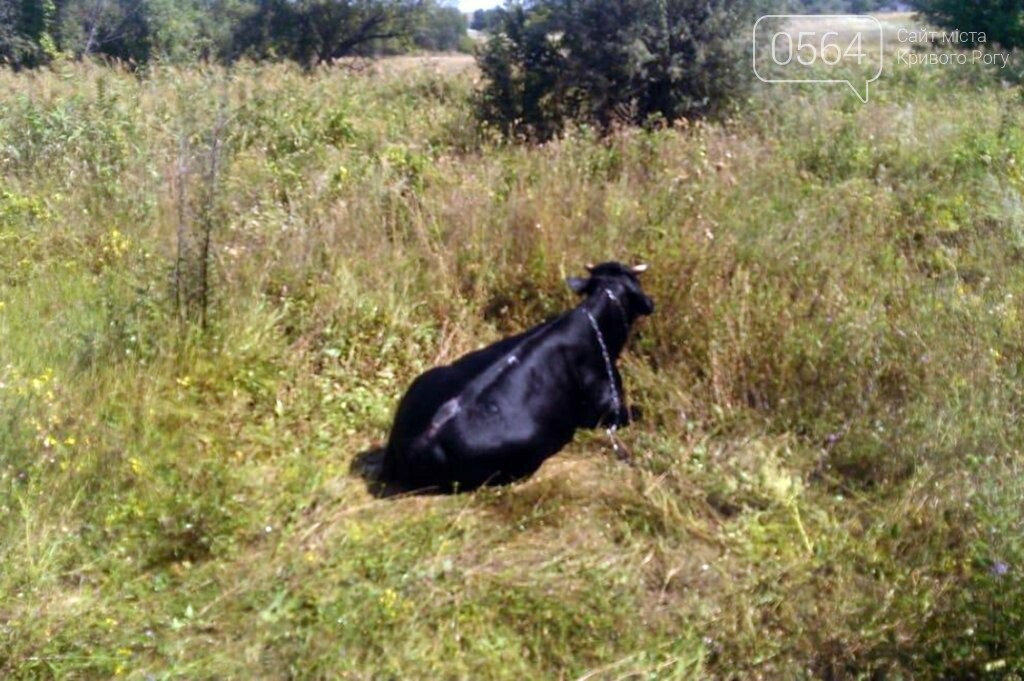 В пятницу, 31 августа, в 11:27, в Службу спасения «101» обратились неравнодушные граждане и сообщили, что по улице Степной в поселке Новолозоватка Криворожского района в яму упал бык.