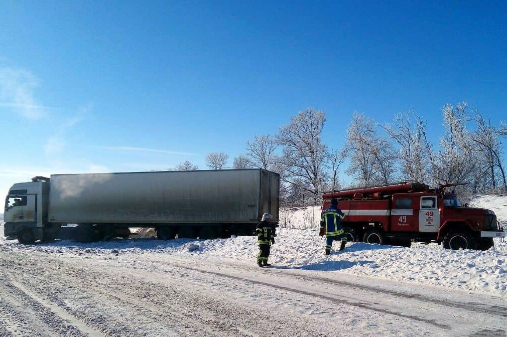 В Криворожском районе спасатели освободили грузовик из снежного плена, - ФОТО, ВИДЕО