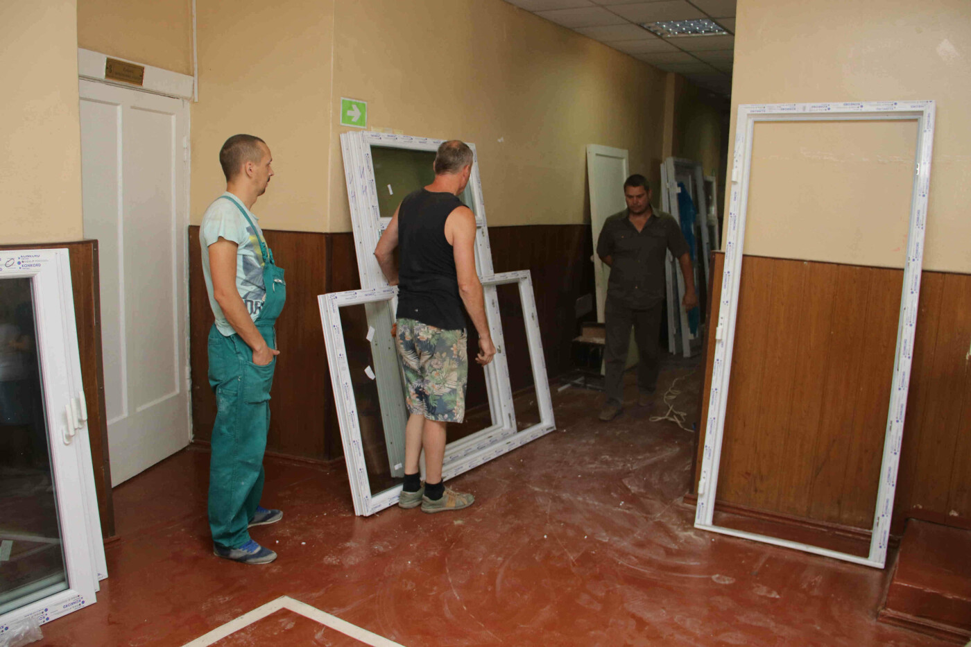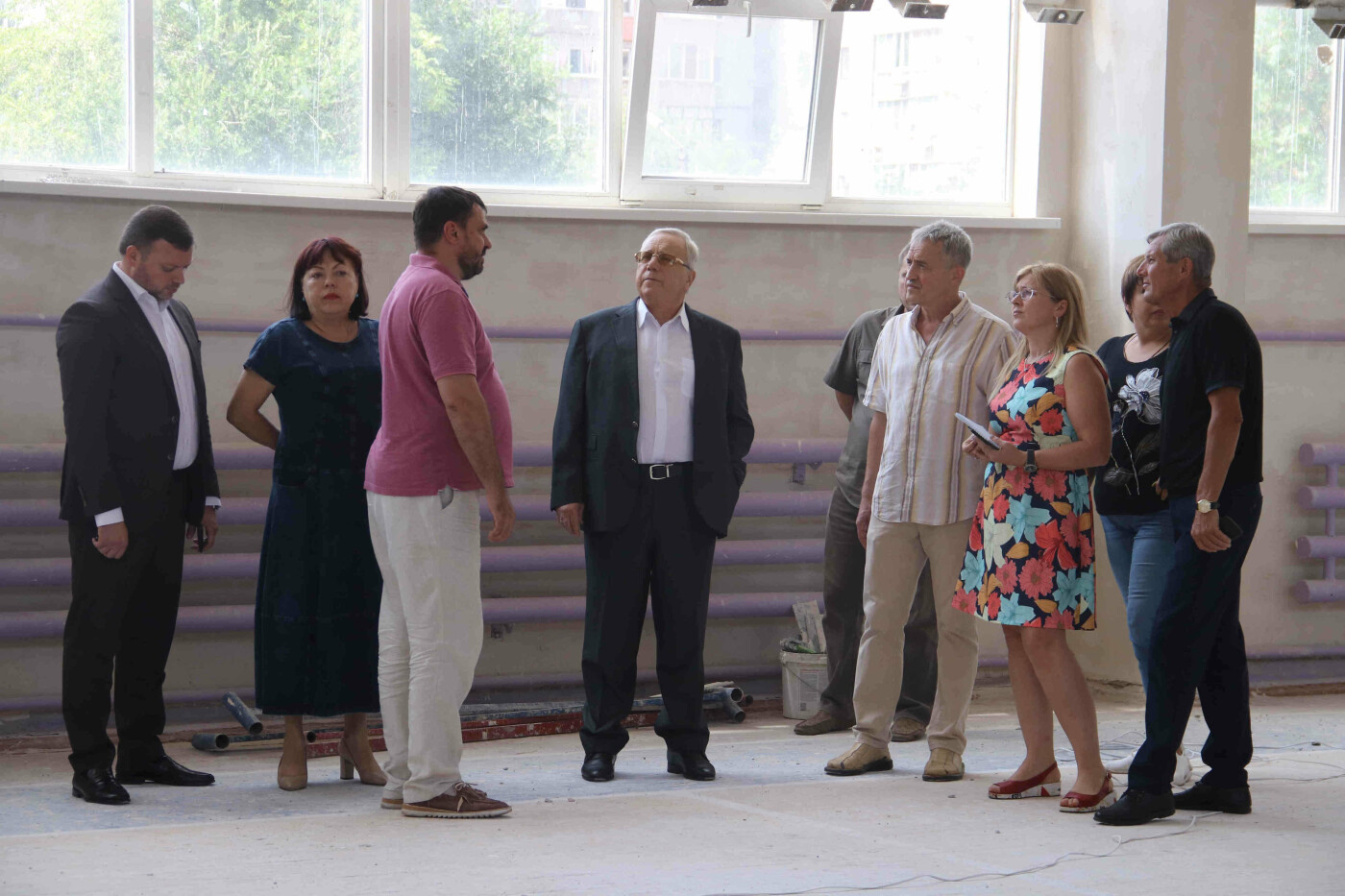 Під час робочої наради мер ознайомився з ходом ремонтних робіт спортивної зали, роздягалень та душових у школі №94 та санвузлів у КЗШ №90. Роботи йдуть за графіком і до кінця серпня будівельники завершать ремонти у 90 школі, а спортивна зала гостинно відчинить двері для школярів у жовтні.