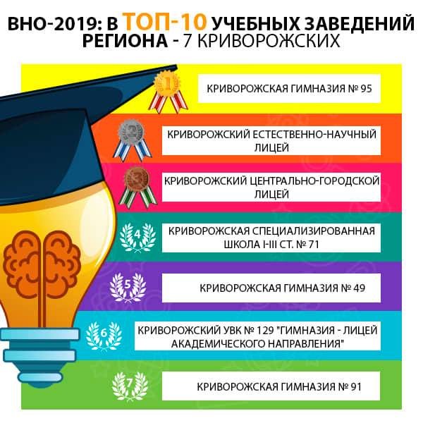 ВНО-2019: в ТОП-10 школ Днепропетровщины с самым высоким рейтингом - 7 криворожских, - ИНФОГРАФИКА