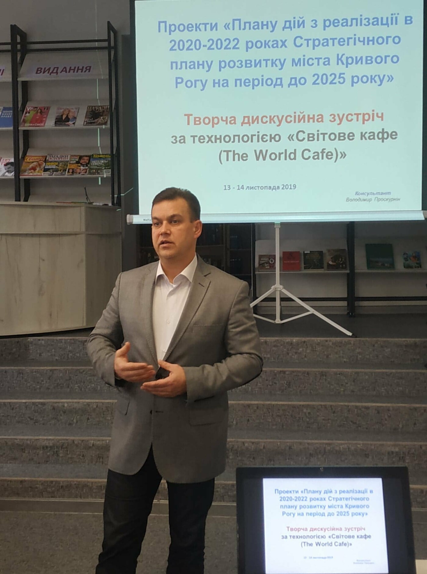 Стратегічне планування є визнаним світовою практикою елементом управління міста та виступає інструментом, здатним об’єднати зусилля міської влади та громади у напрямку розвитку міста. У заході прийняв участь Володимир Проскурнін, експерт та консультант з питань стратегічного планування територій. «Я гарно знаю Кривий Ріг і разом з командою проекту міжнародної технічної допомоги «Місцевий економічний розвиток міст України» у 2011 році здійснював розробку першого Стратегічного плану Кривого Рогу. Тому ми разом ефективно та плідно будемо працювати над розробкою стратегічного плану розвитку Кривого Рогу на період до 2025 року», - сказав Володимир Проскурнін.