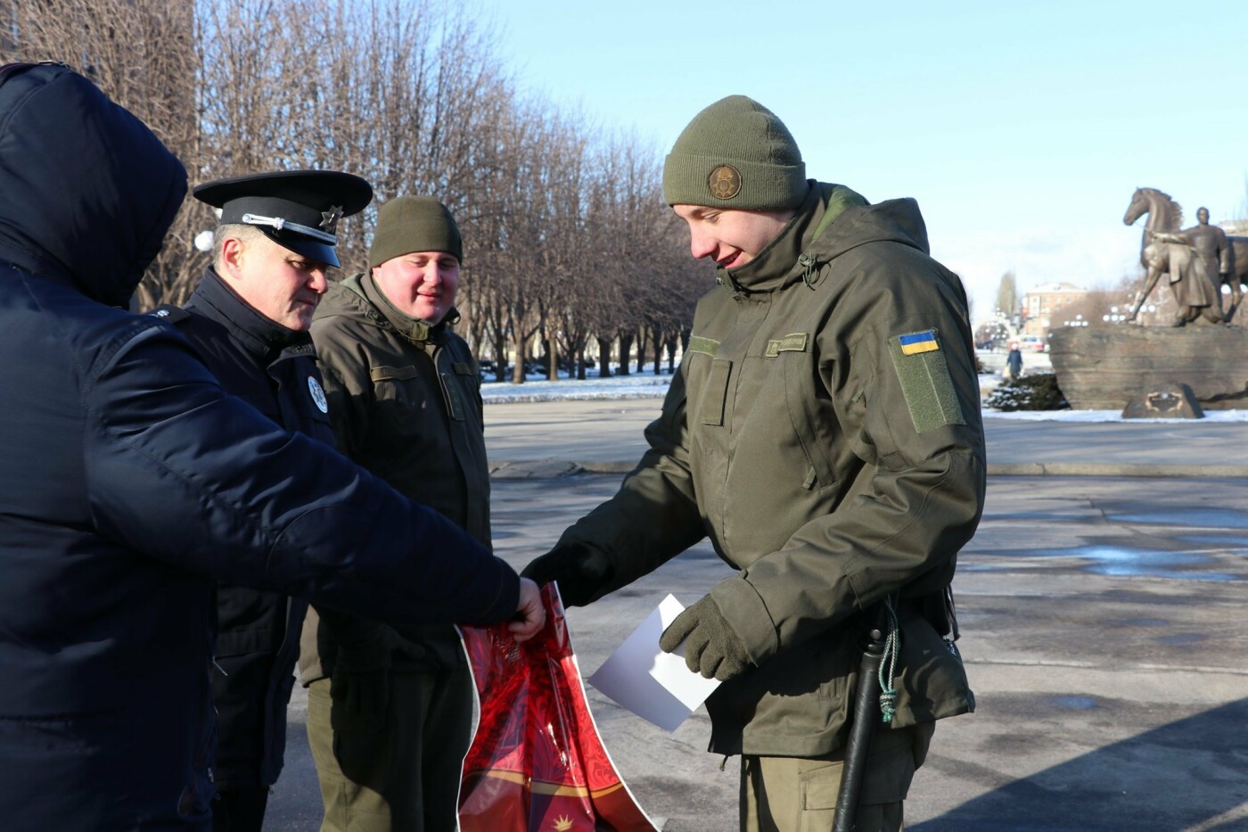 Как сообщает пресс-служба бригады в Facebook, 7 февраля на площади возле Криворожского городского совета гвардейцам, которые недавно пополнили ряды Национальной гвардии Украины, торжественно вручили сертификаты о прохождении курса обучения по вопросам обеспечения общественной безопасности.