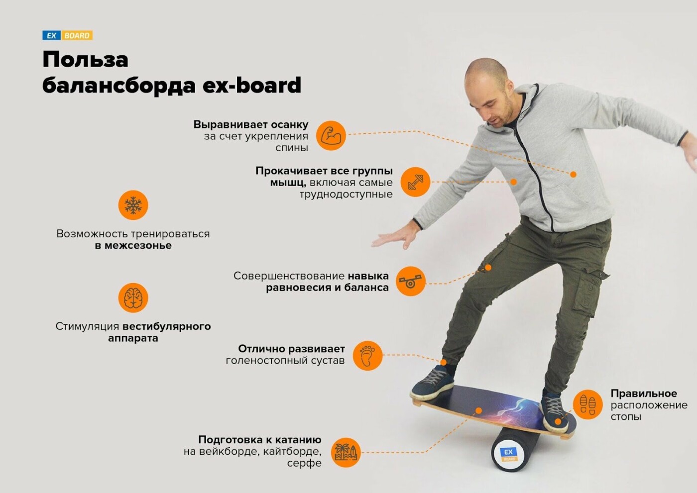 ·Удержание равновесия на доске способствует тренировке мозжечка, что приводит к усиленному питанию головного мозга. Человек постепенно начинает ощущать ловкость своего тела, улучшение памяти и координации движений.
