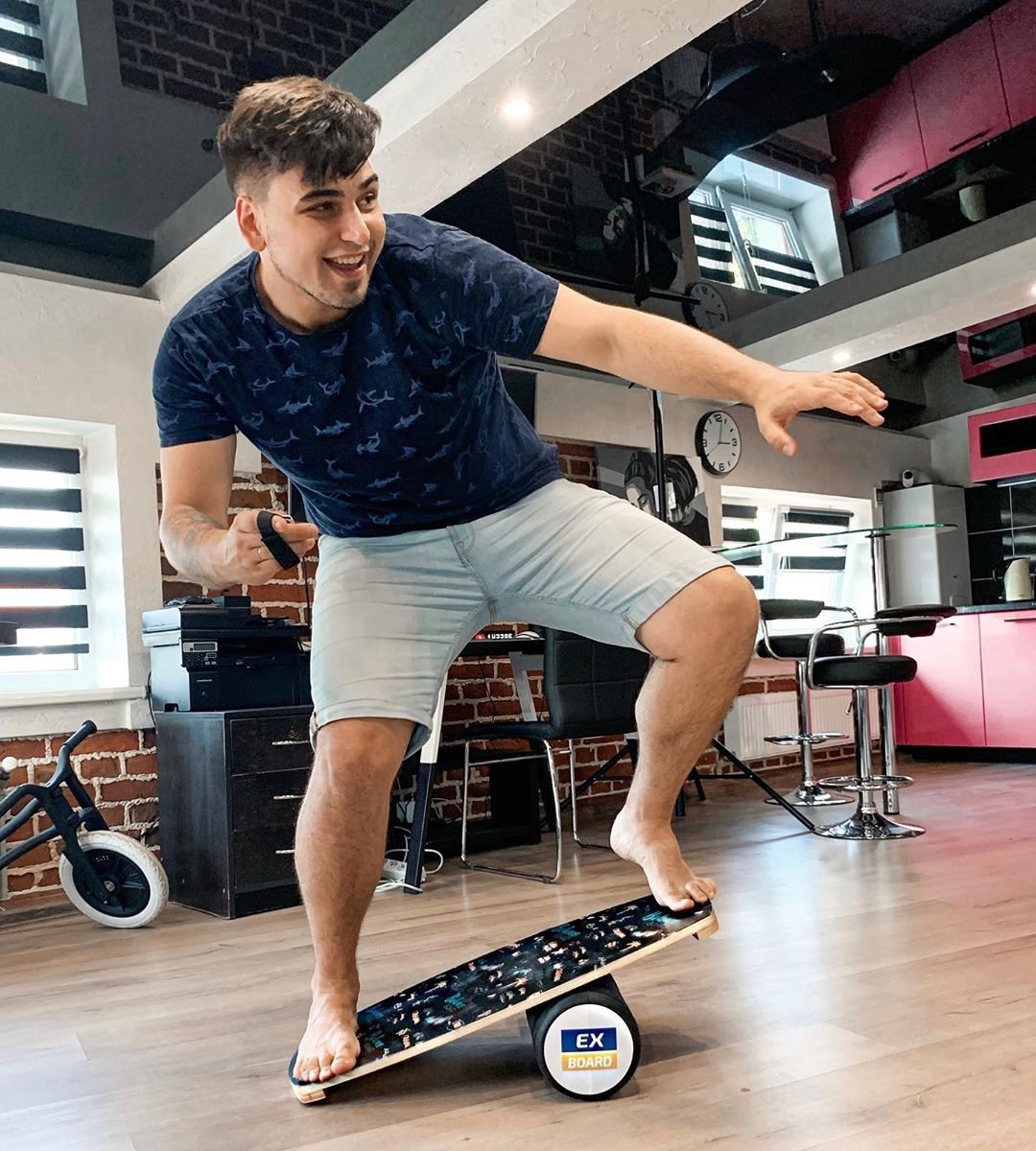 Балансборд – это очень простой и небольшой по размерам тренажер, предназначенный для укрепления различных групп мышц и улучшения координации движений. Он представляет собой доску, похожую на скейт, которая помещается на прочный валик диаметров 11-16см. Когда вы встаете на доску обеими ногами и пытаетесь сохранить равновесие, мышцы вашего тела начинают активно работать, после нескольких тренировок вы заметите, что стали более ловким и гибким.