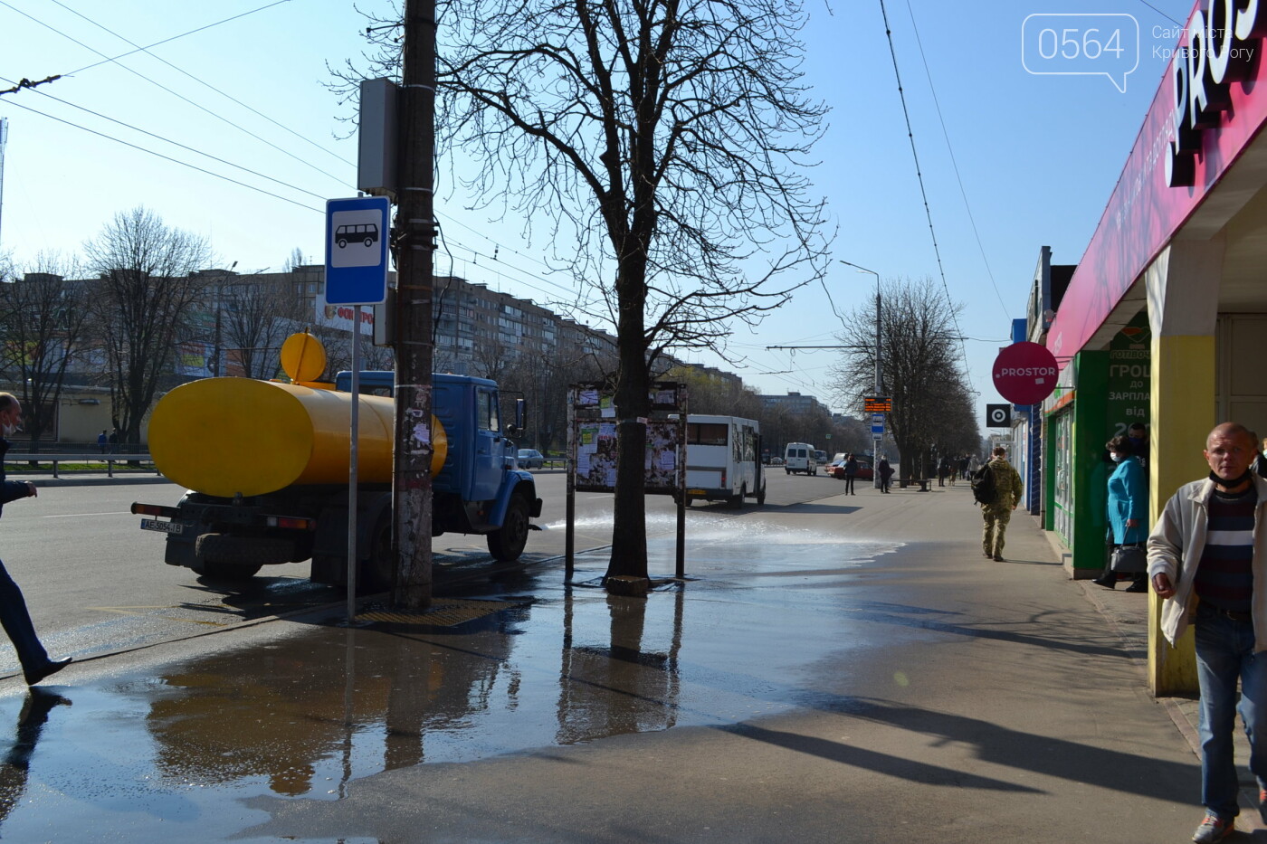 Увидев спецавтомобиль, горожане пытались не попасть под струи разбрызгивателя, однако не всем это удавалось. Кое-кто, все-таки, смог продезинфецировать обувь и даже нижнюю часть брюк.
