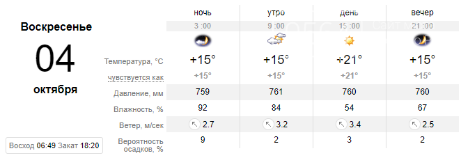 Воскресенье, 4 октября