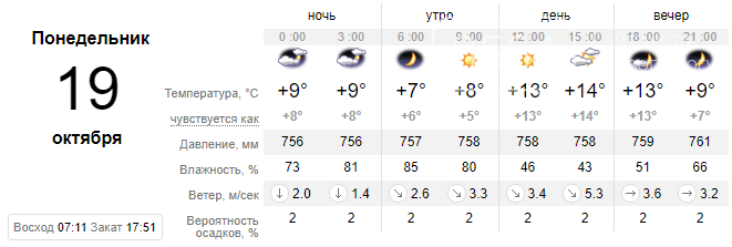 Понедельник, 19 октября