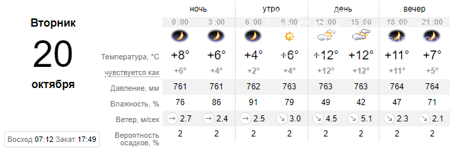 Вторник, 20 октября