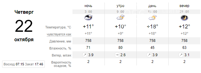 Четверг, 22 октября