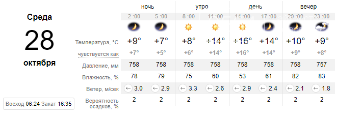 Среда, 28 октября